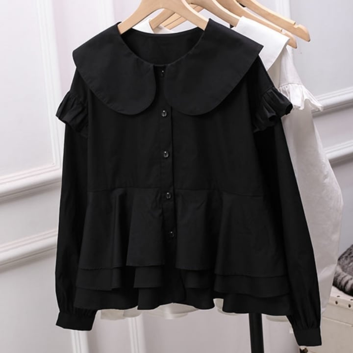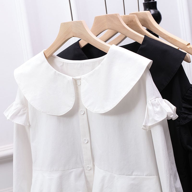 Hem frill round collar shirt《2color》