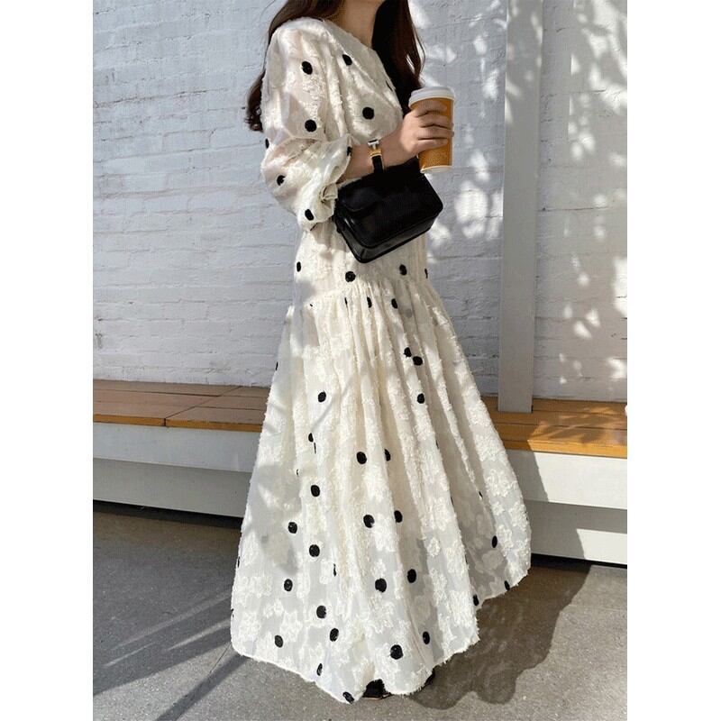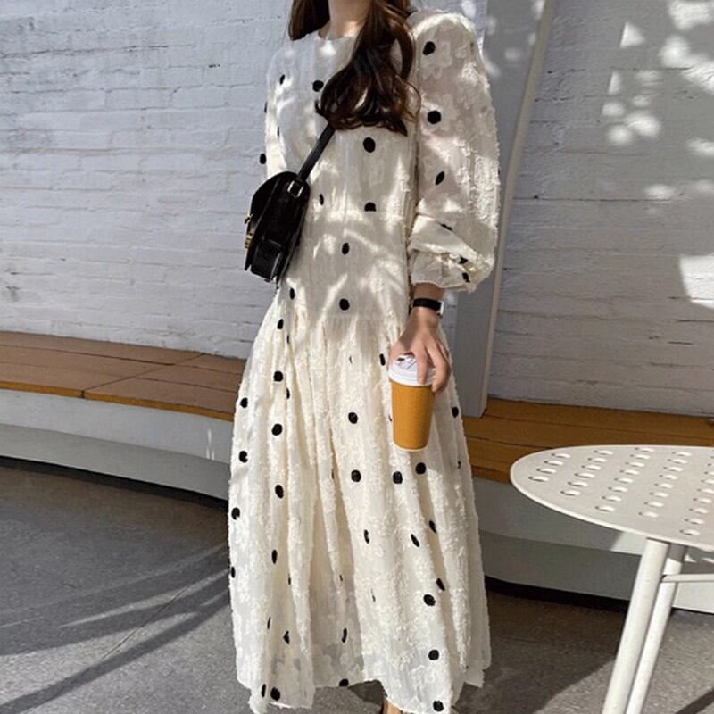 puff sleeve mid-length dress