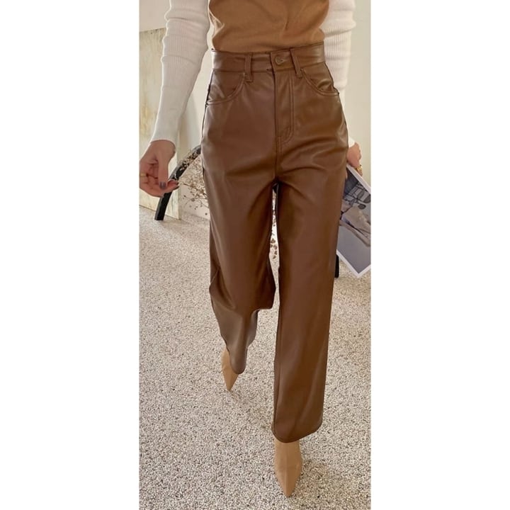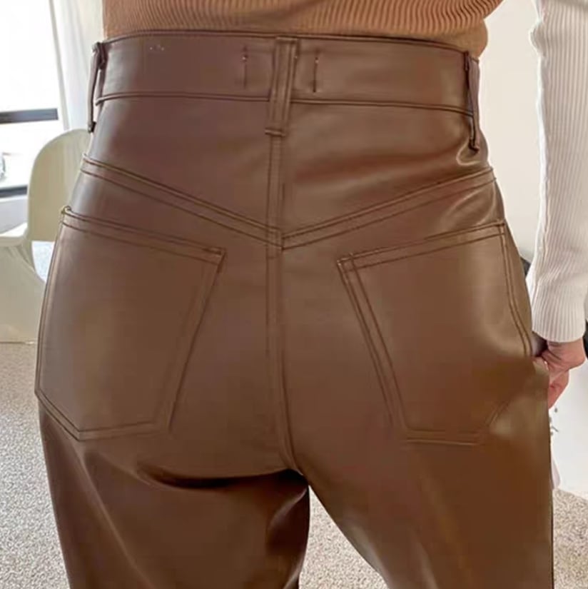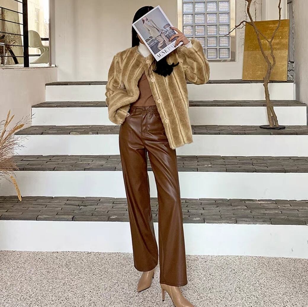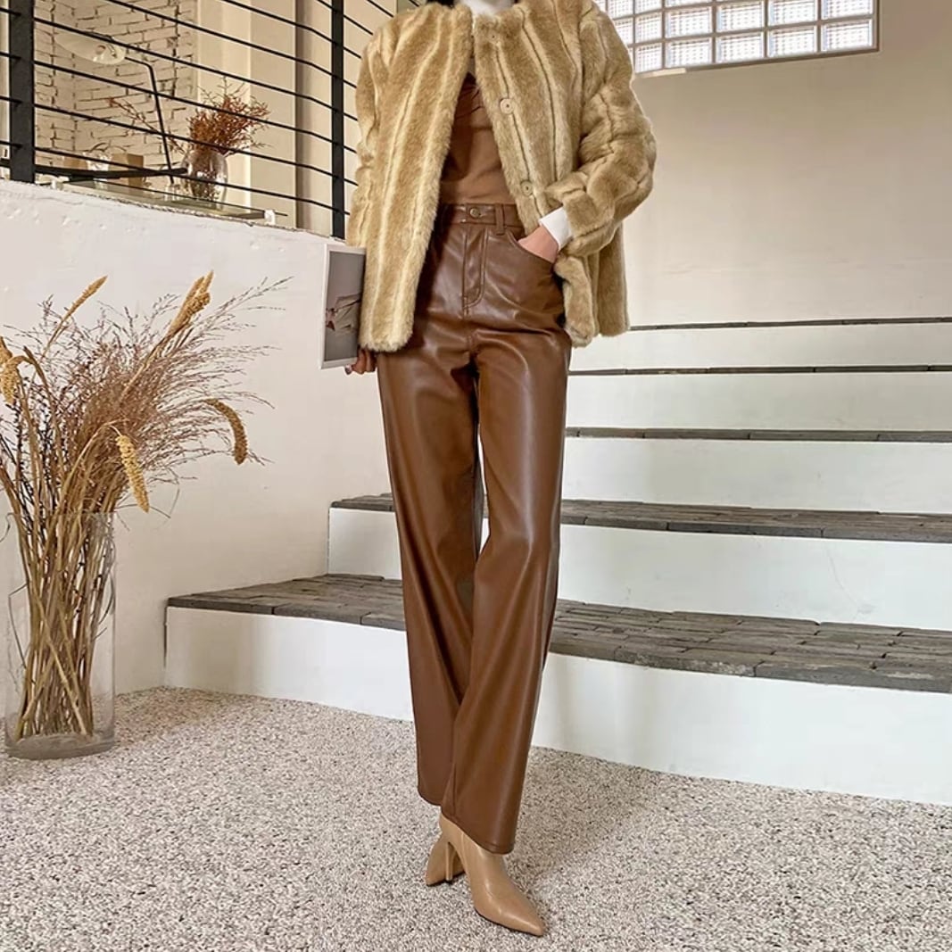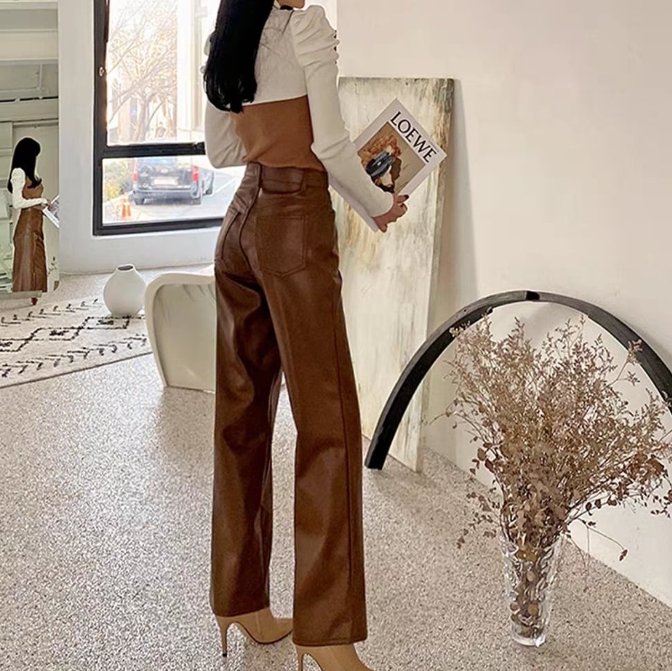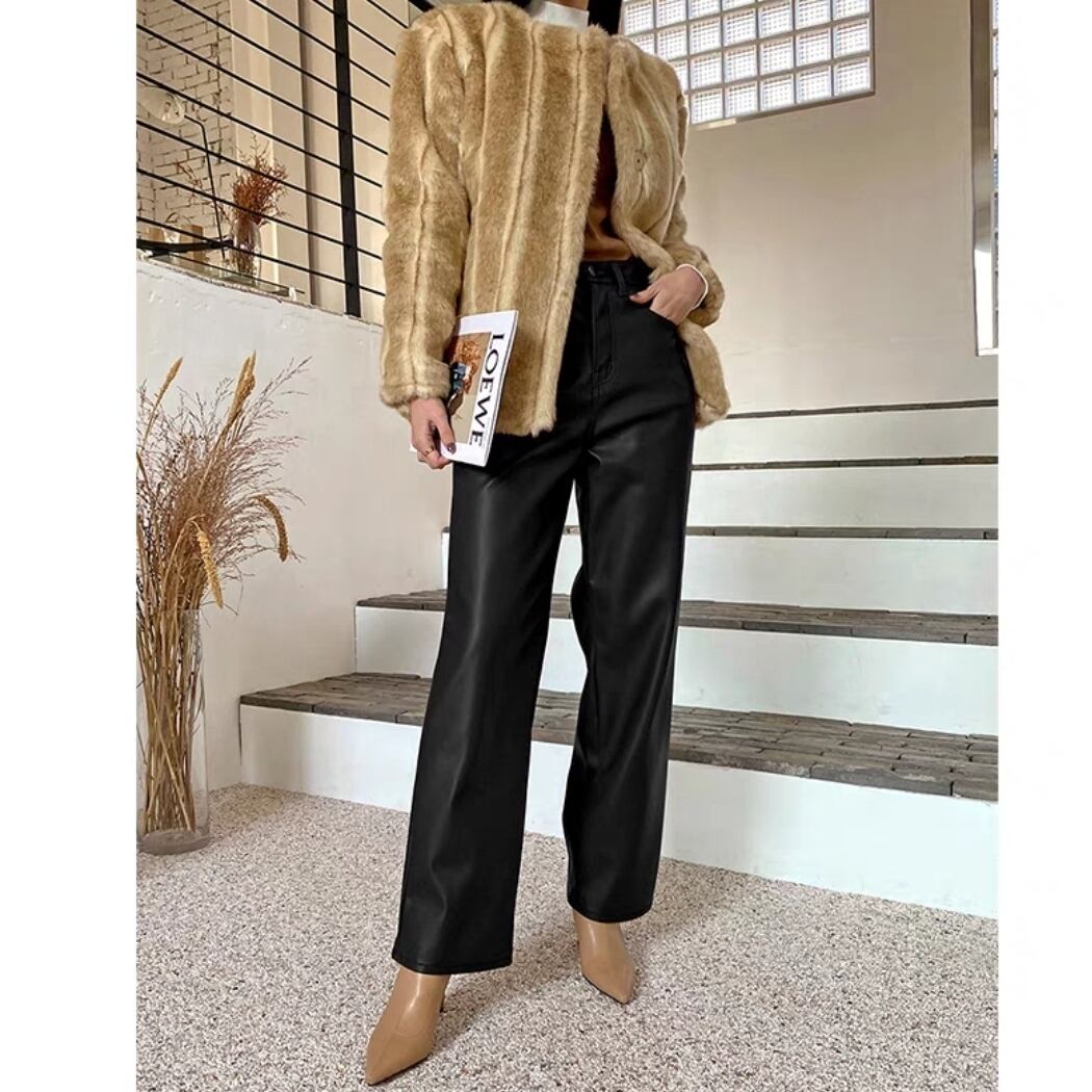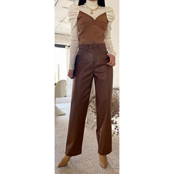 【選べる♡丈・サイズ】Eco leather high waist straight pants《2color》
